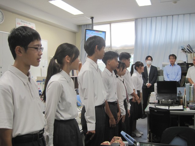 10月21日(火)、第56期生徒会総務のメンバーが先生たちにあいさつを行いました。やる気に満ち、頼もしく、これからの活躍に期待大です!!