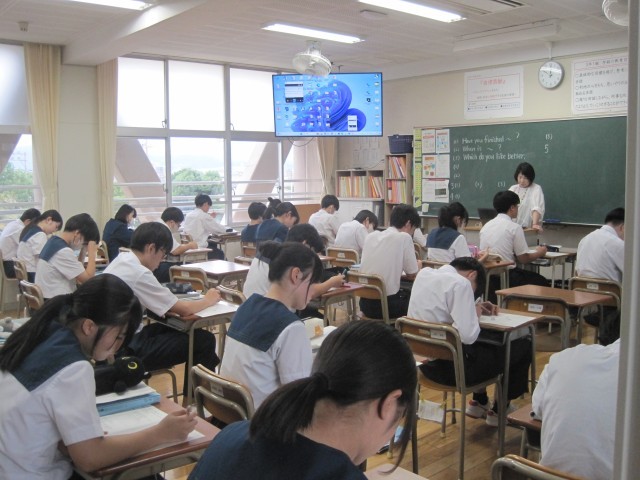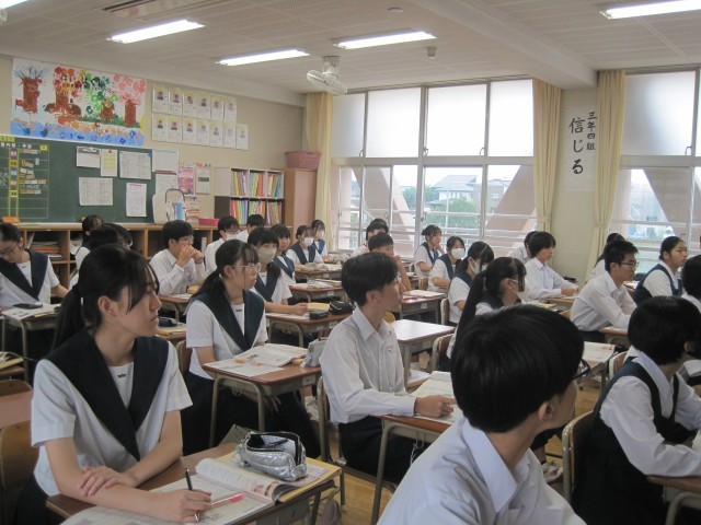 10月22日(水)、3年生は黙々と学習に励んでいました。リスニングテストを行っていた3年1組では、小田先生から「次の質問が大事!」とアドバイスが!