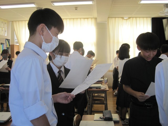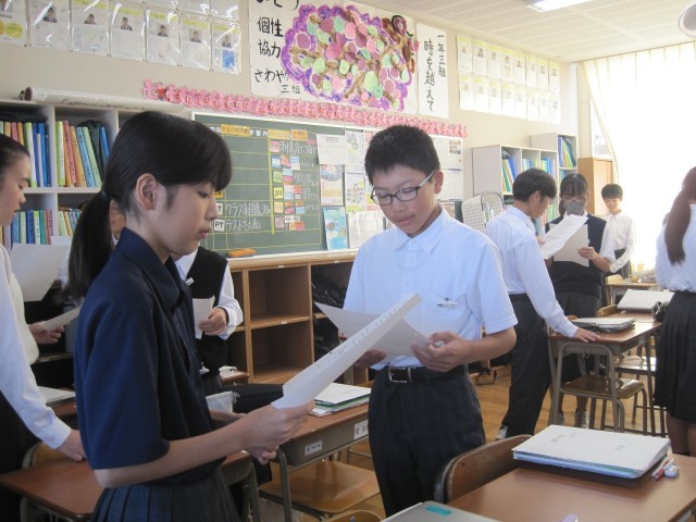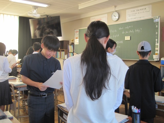 1年3組の英語の授業では、示された英文のspeakingが行われていました。自信をもって練習できました!