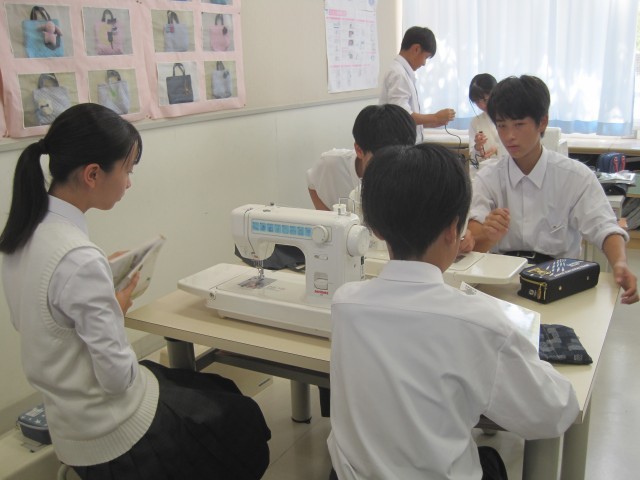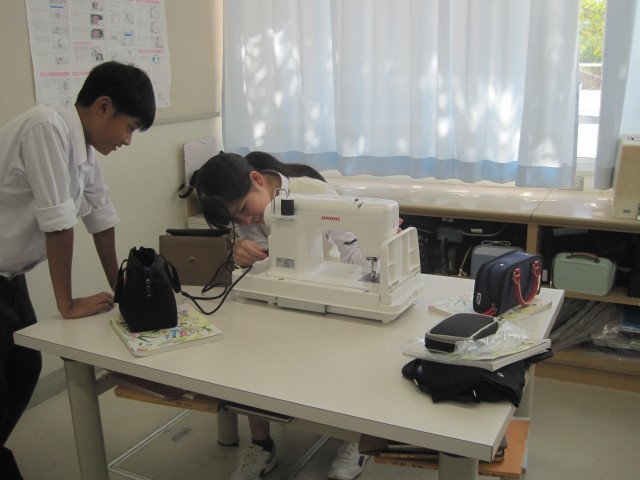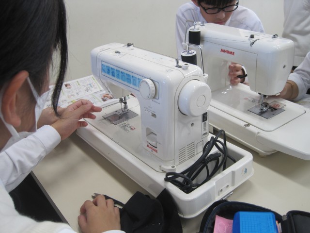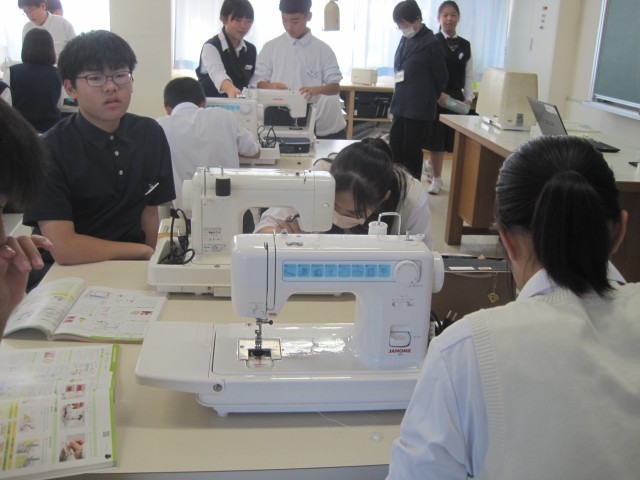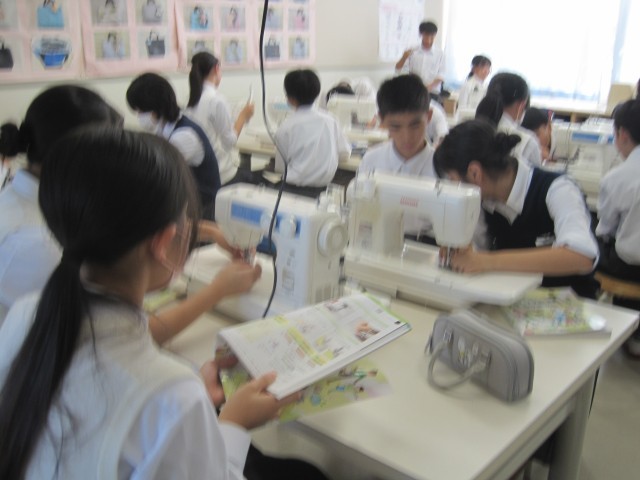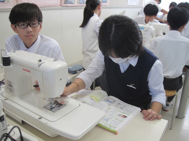1年2組の家庭科の授業では、ミシンの使い方を確認していました。中には、教科書を見ながら確認している人も!さて、使い方はばっちりになりましたか?