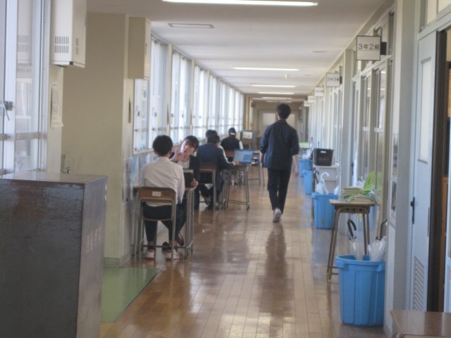 3年生は担任の先生と二者面談を行っていました。とても真剣な表情で、緊張感が伝わってきます。(邪魔にならないように遠くから撮影しました…)