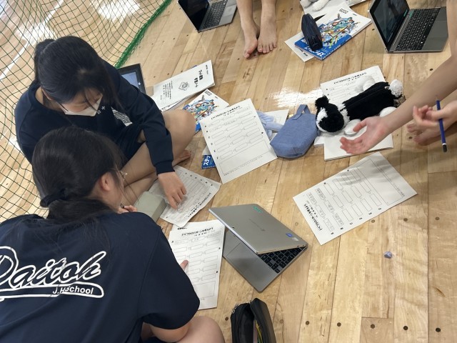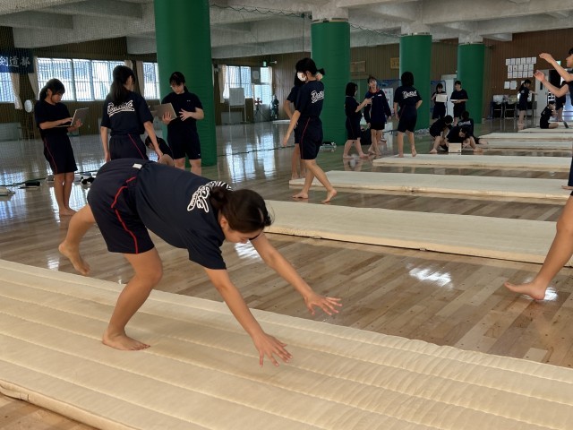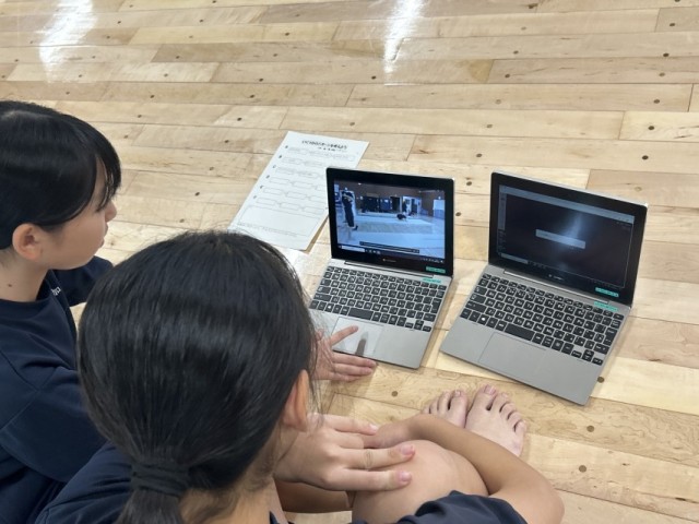 生徒はペアやグループで動画を撮影しながら、どこを改善すべきなのかアドバイスし合いながら、発表に向けて完成させていく姿が見られました。