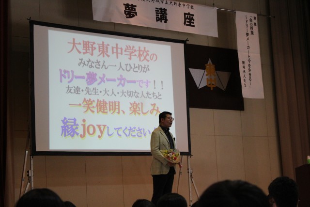 「先生や大人を信じてほしい。君たちの周りには君たちを想ってくれている『ドリー夢メーカー』がたくさんいます。一笑健明(いっしょうけんめい)楽しみ 縁JOY(えんじょい)してください」