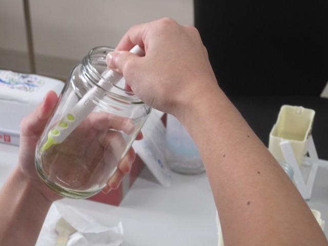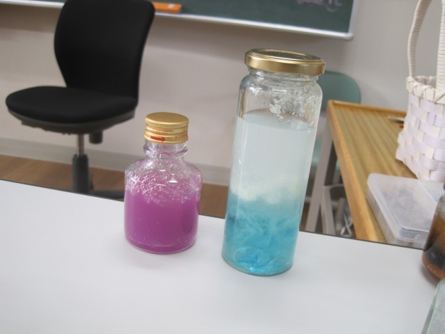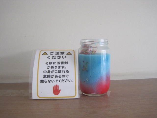 まどかルームの生徒さん作の消臭剤が完成しました!さっそく東側昇降口に置いてありました!!1枚目の写真は宮﨑先生の作品です。おしゃれな作品ですね!