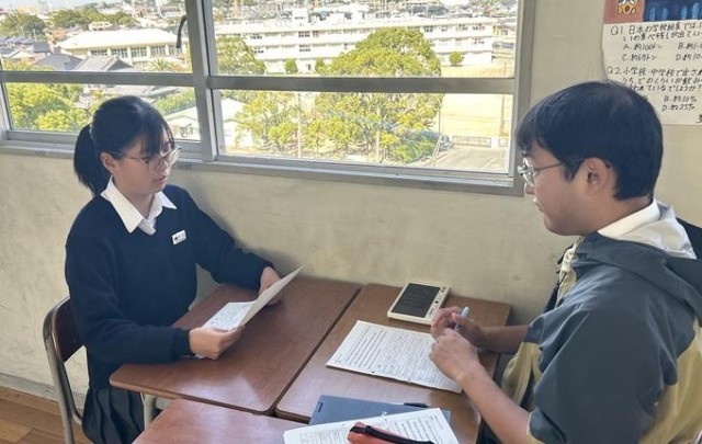 1年4組では英語の授業でパフォーマンステストが行われていました。