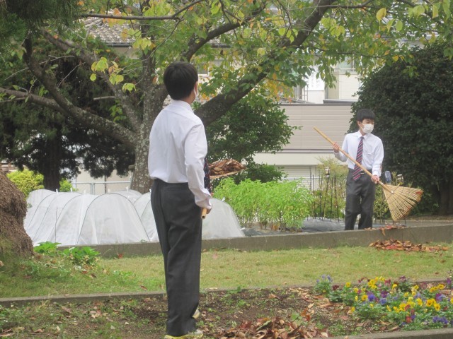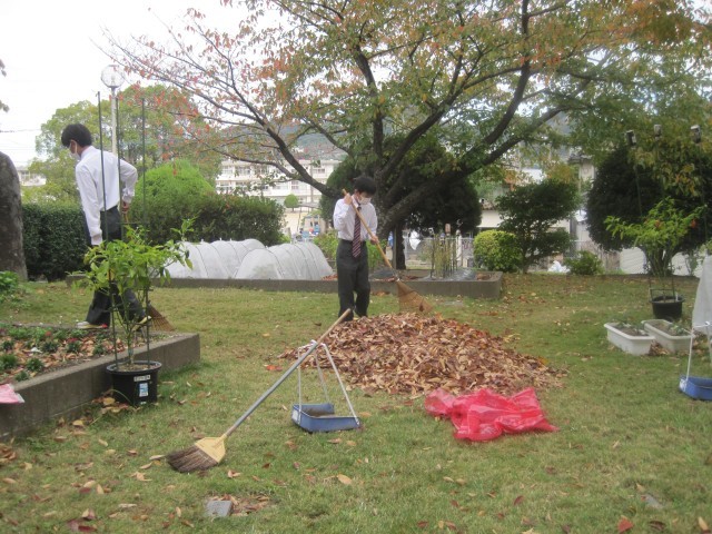 中庭の落ち葉があまりにも多く、まどかルームの生徒さんたちがきれいに清掃してくれました。「外を見たらあまりにも…」ありがたいですね!!風が冷たい中、ありがとうございました!!とてもきれいになりました。