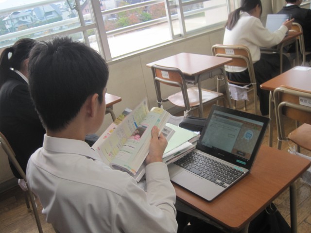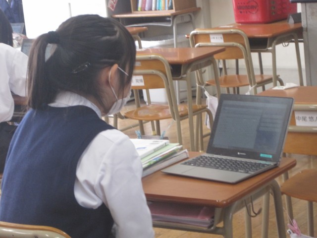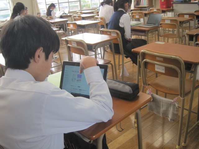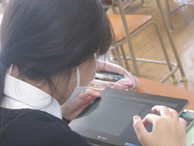 学級閉鎖が決まった1年6組は、タブレットを用いて復習を行いました。分からないところは教科書で調べるなど、意欲的に取り組みました。
