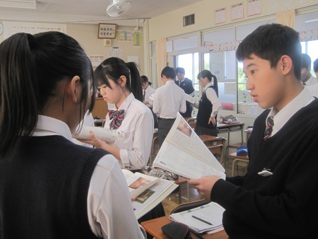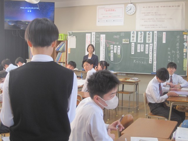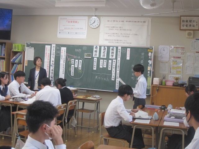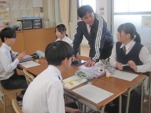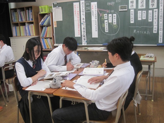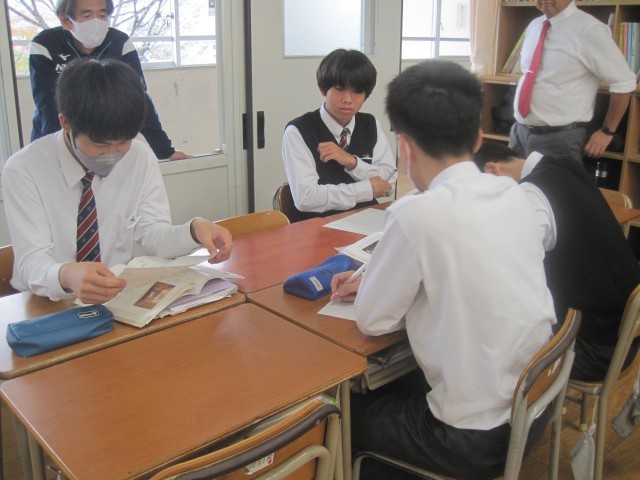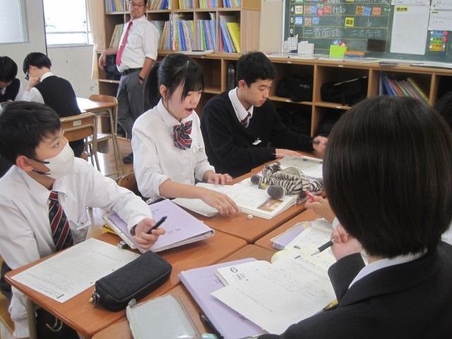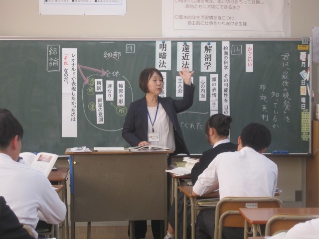 2年4組では佐藤先生の授業研修が行われました。批評文「君は『最後の晩餐』を知っているか」で述べられている筆者の主張に対する自分の考えをまとめ、班で交流しました。