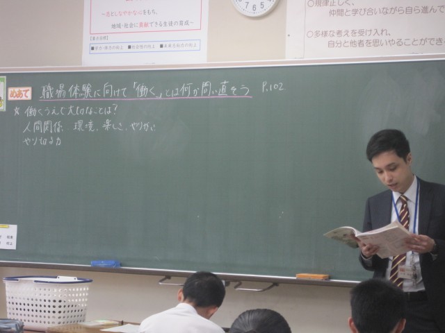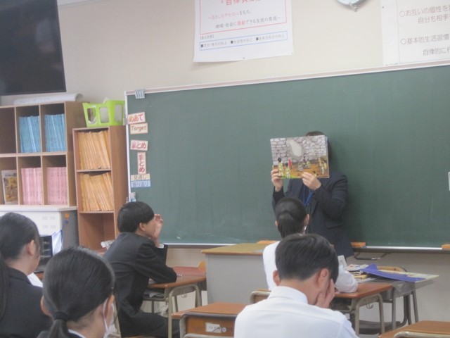 2年生の道徳の授業が行われていました。2組では、佐藤先生が絵本の読み聞かせを行いました。とても上手で、生徒の皆さんの集中ぶりがすばらしかったです!