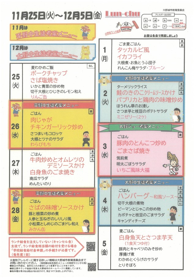11月25日~12月5日ランチメニュー