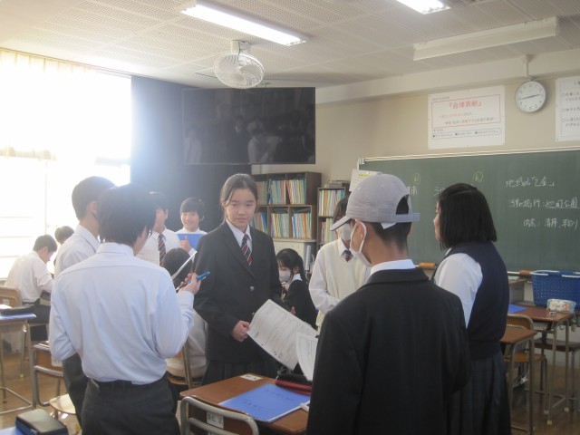 5校時に1年生は来週27日(木)に行われる地域貢献活動の打ち合わせを行いました。