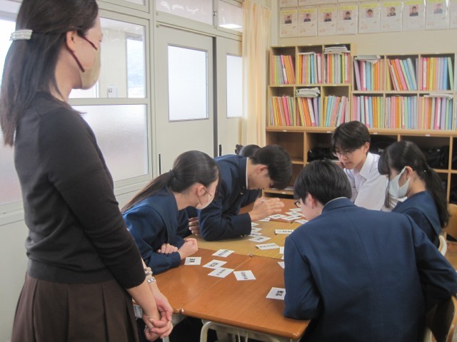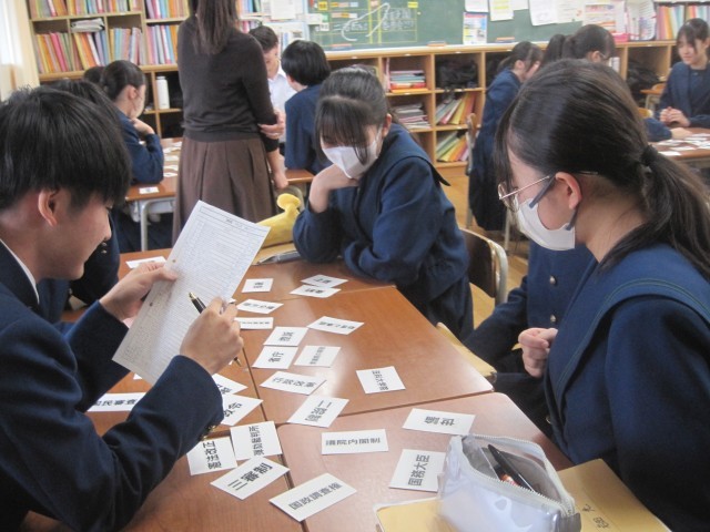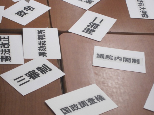 3年4組の社会は大盛り上がりでした。古寺先生お手製の「三権分立かるた」で復習中でした。札を取り合う姿も楽しそうです。
