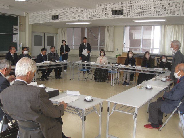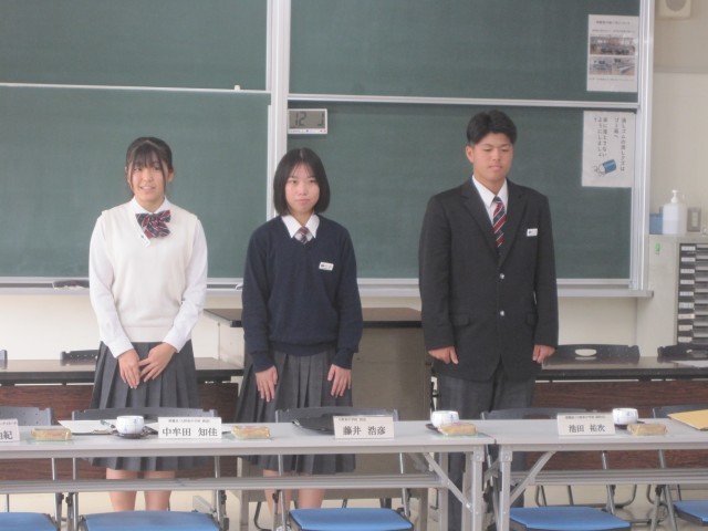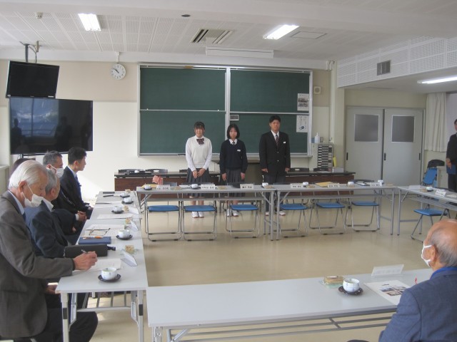 第3回学校運営協議会が行われ、第56期生徒会役員の生徒会長、2年副会長があいさつを行いました。