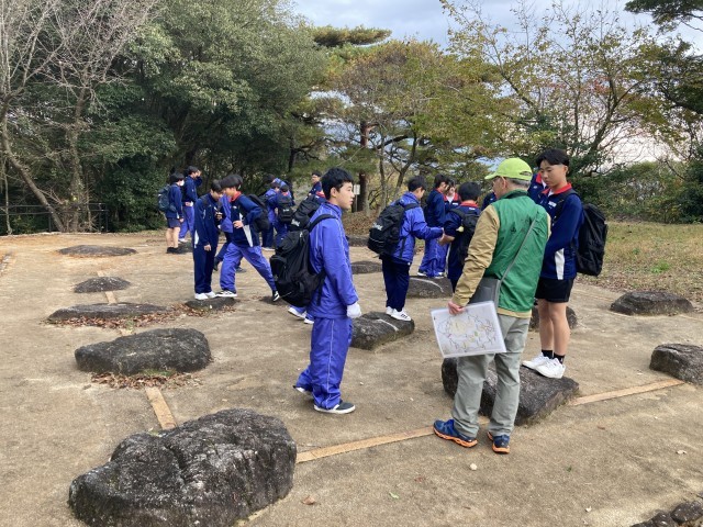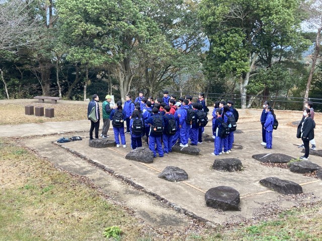 2年生は遺跡巡りを行っています。山道を登りながら史跡を巡ります。心のふるさと館の方やボランティアの方の話を聞いたり自分たちから質問をしたりして積極的に活動しています。