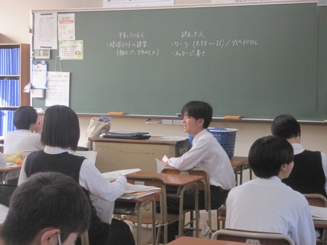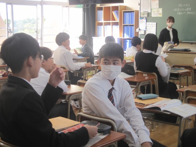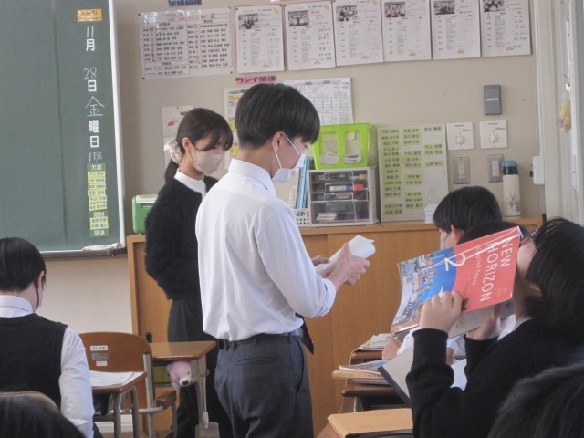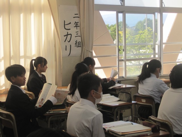 11月28日(金)、2年3組の英語の授業は暗唱テストでした。ALTのマット先生が“Hellow!”とにこやかに出迎えてくれます。皆さん、ちゃんと暗唱できたでしょうか?