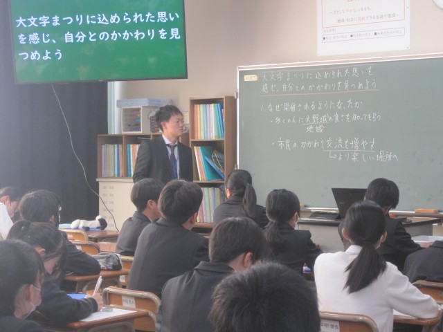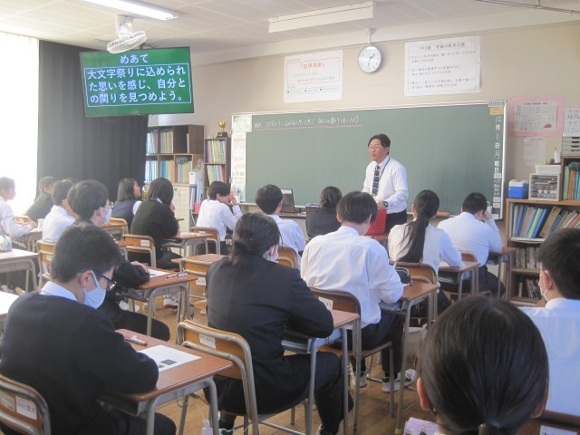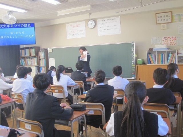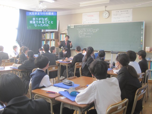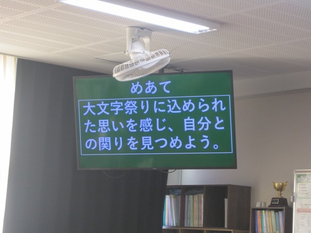 「心の教育」公開授業参観が行われました。1年生はどの学級も「おおの山城大文字まつり」を題材に授業が行われました。