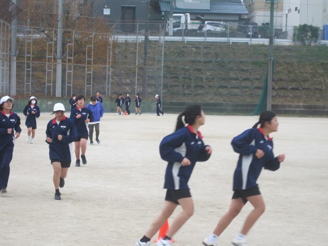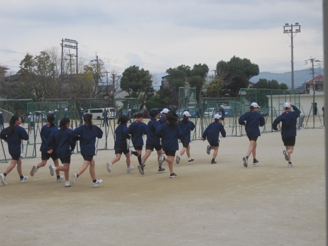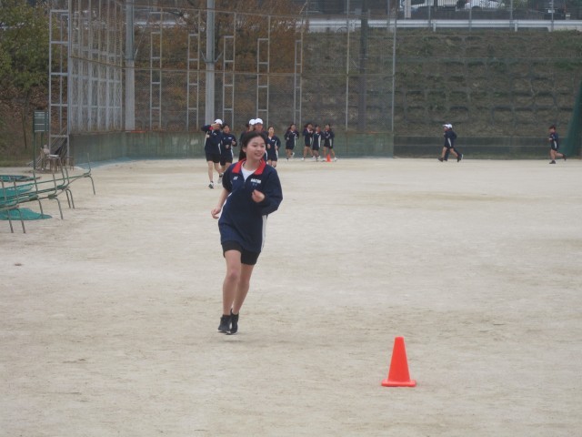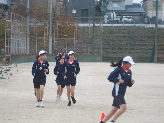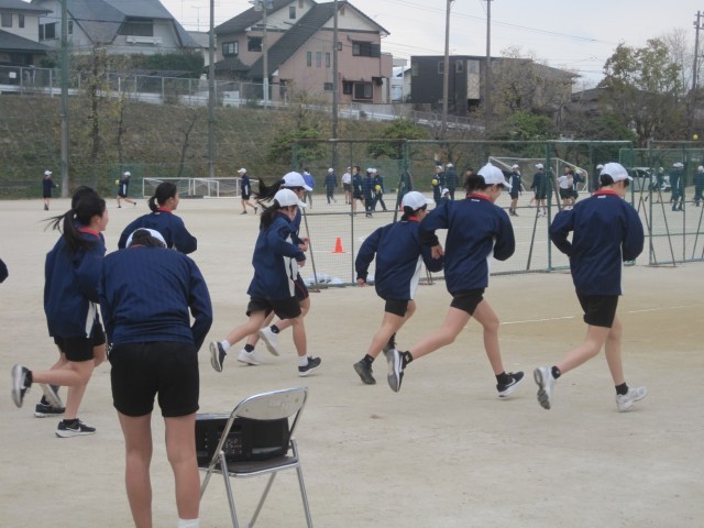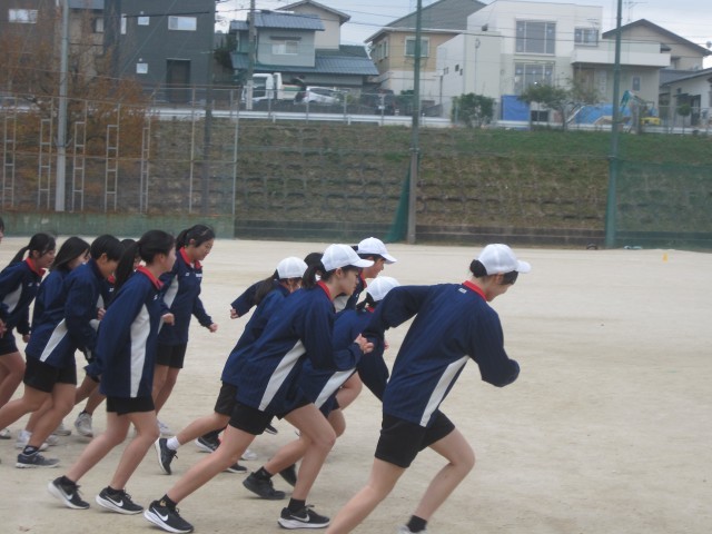 2年5,6組の女子の保健体育の授業では、持久走に挑戦しました。ペース配分を考えながら頑張っています!