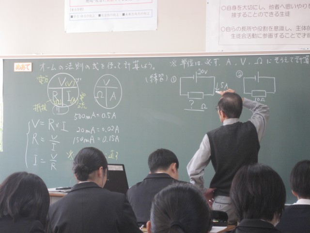 2年6組の理科の授業では、「オームの法則」を学習しました。先生の説明をしっかり聞き、練習問題に挑戦します!