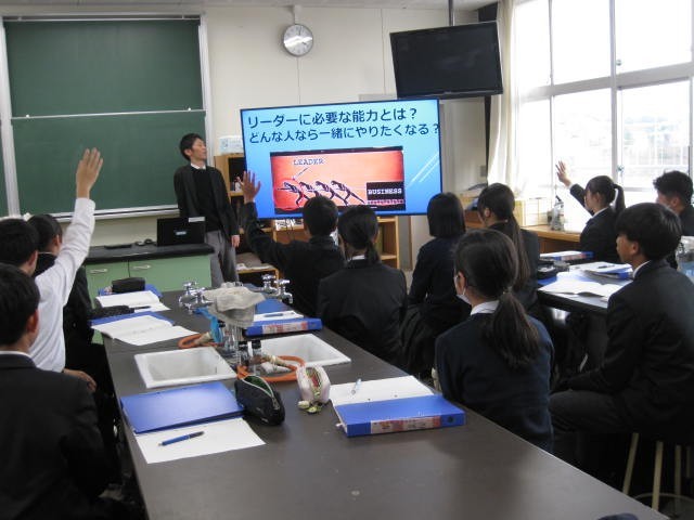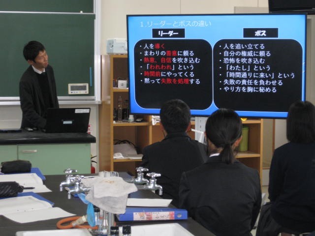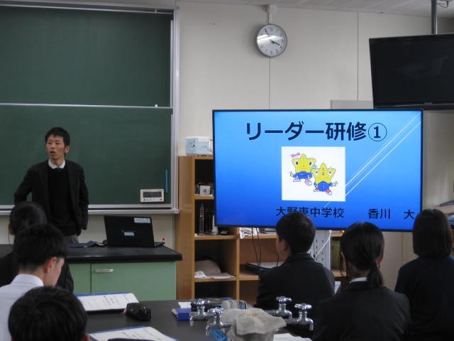 本日、放課後に生徒会役員のリーダー研修会が行われました。先生方が入室されるたびに大きな声であいさつをしていました。自覚ある行動が素晴らしいなと感じました。会の最初は、生徒会長から大野東中学校の目指す姿が語られました。その後、2学年主任の香川先生から「リーダーとは」という題名で講話をしていただきました。「どんなリーダーになりたいか」、「今は自分はどんな姿か」などたくさん考える時間となりました。最後にまとめとして2学年の佐藤先生による話がありました。これからの大野東中学校を引っ張て行くリーダーとなっていくことを期待しています。リーダー研修会は5回予定されています。