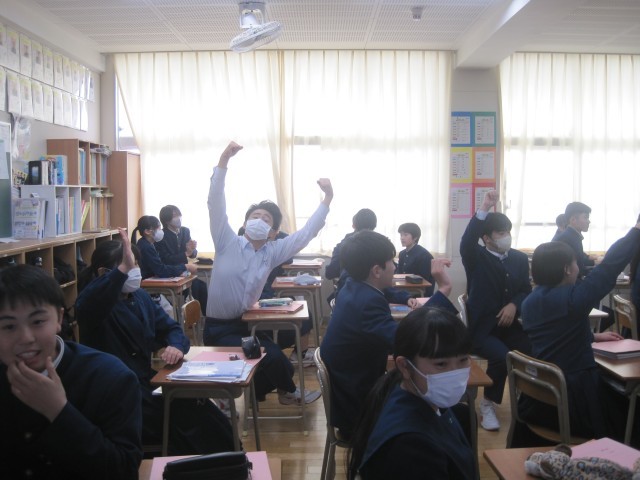 5校時、3年生は道徳の授業を行いました。写真の3枚目までは3年7組の様子です。なんだか楽しそうで、声が廊下まで響いていました!