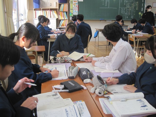 12月19日(金)、3年1組の国語の授業では、魯迅の「故郷」を学習しました。登場人物の人物像を班で整理しました。