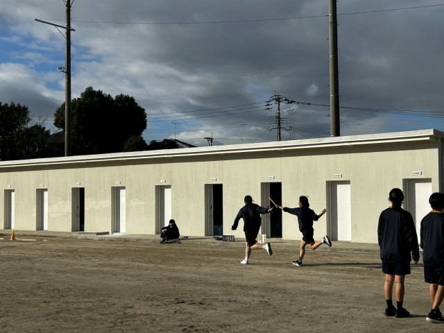 男子はソフトボールの試合を、女子は陸上のバトンパスのテストが行われていました。