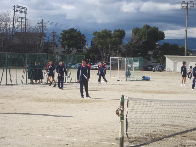 3年5,6組の男子の保健体育の授業では、ソフトテニスを行いました。コートに入れるのが、なかなか難しそうです。ゲームができる日が楽しみですね。