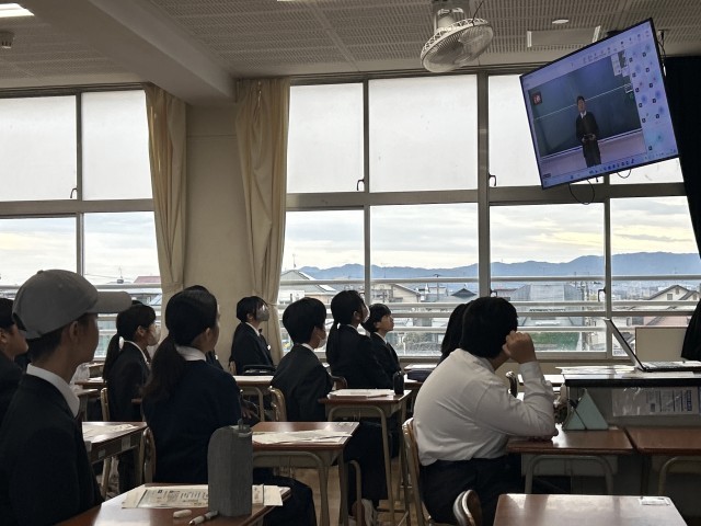 本日で2学期が終わります。体育館・武道館工事中のため終業式は各学級にてオンラインで行われました。