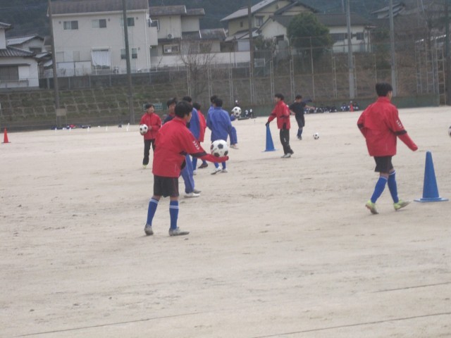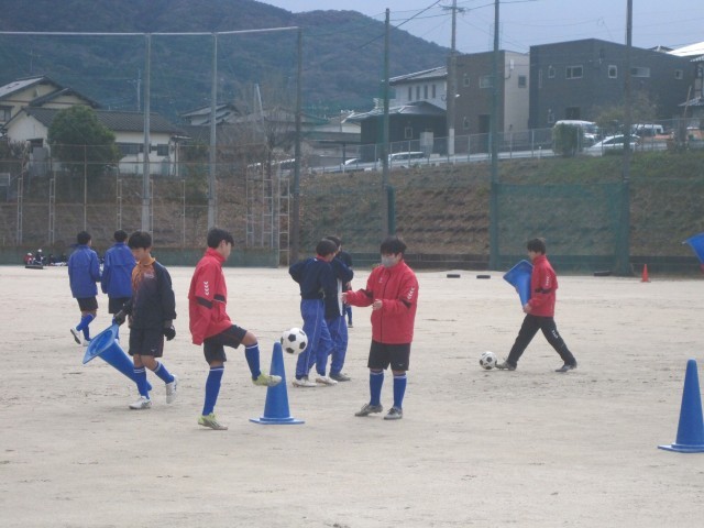 サッカー部も寒い中頑張っています。動いていないと、とても寒いです…