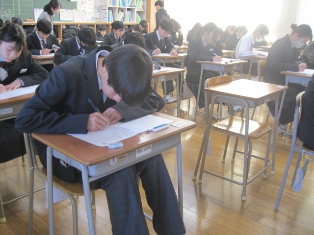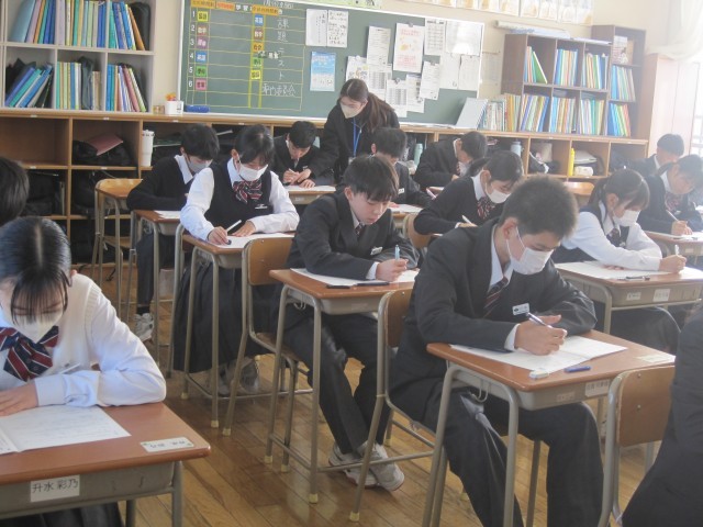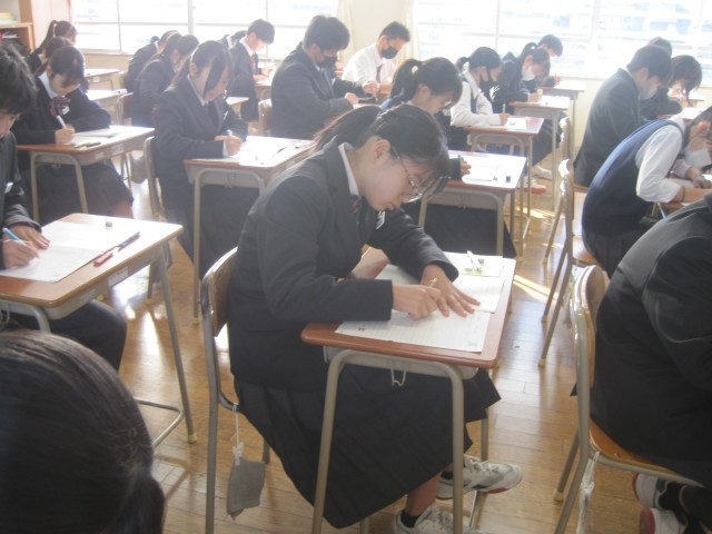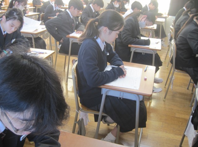 1年生も課題テストを①英語、②数学、③社会、④理科、⑤国語の順番で行いました。