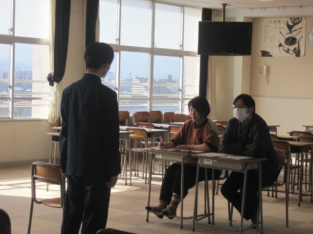 3年生は本日より面接の練習を始めました。本日は多目的室で行いました。先生たちも真剣な表情です!