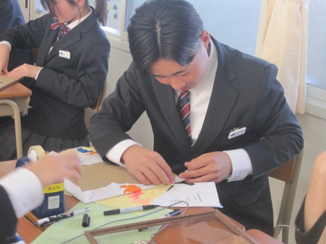 2年4組の美術の授業では、2学期から取り組んでいるタペストリーが完成したようです!額に入れると、また雰囲気が変わります!!