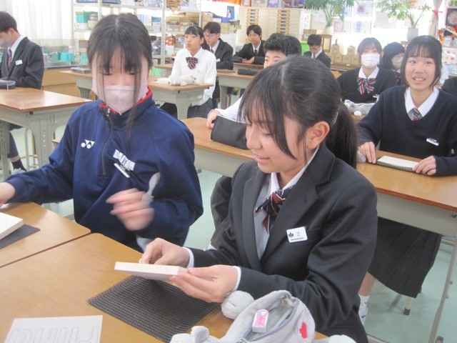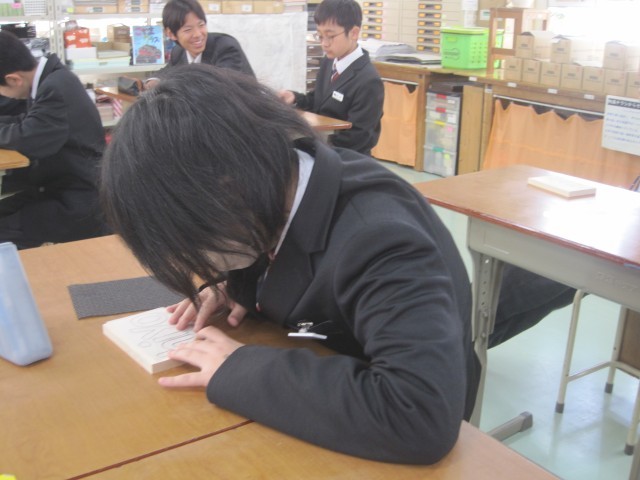 1年1組の美術の授業では、「自分の部屋に飾るネームプレートをつくろう」と、ネームプレートづくりが始まっていました。下描きができた人は、もう彫り始めるようです!完成が楽しみですね!