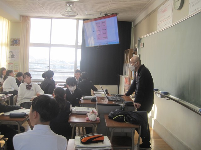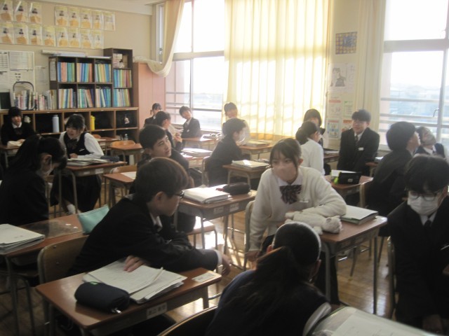 1月16日(金)、1年2組の英語の授業では、ペアで過去形の確認をしていました。ワイワイ楽しそうな声が廊下まで響いていました!