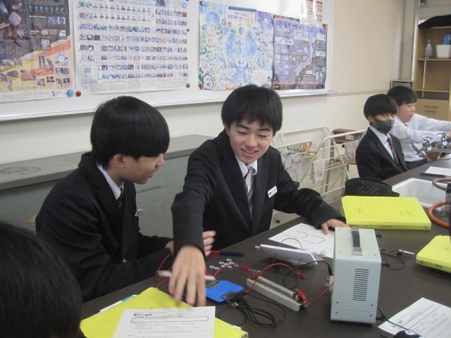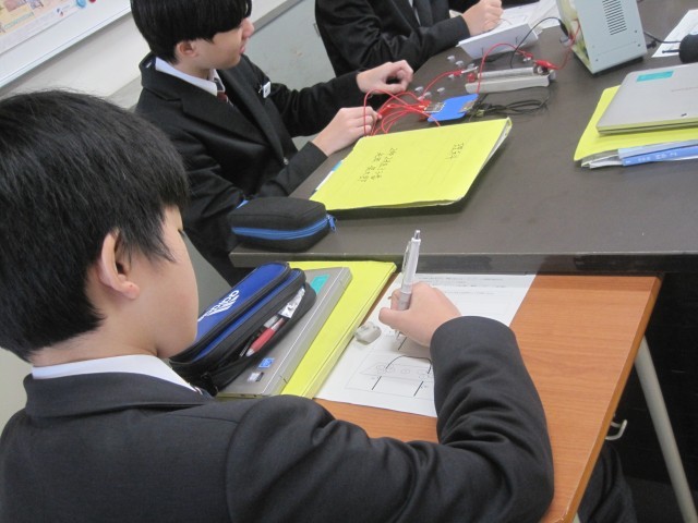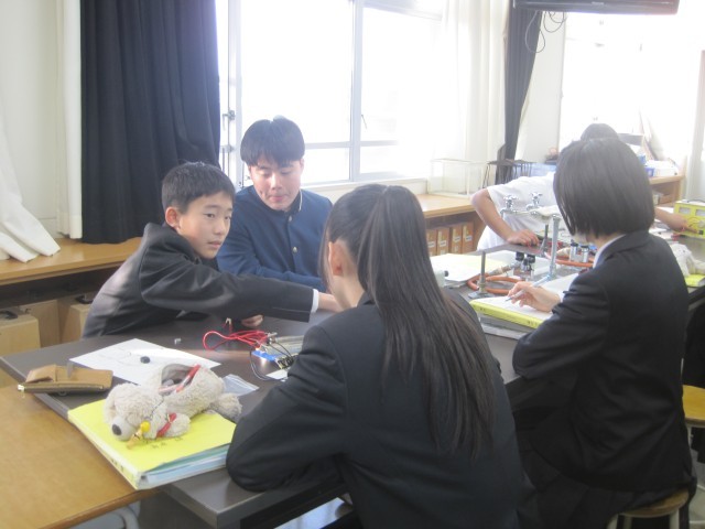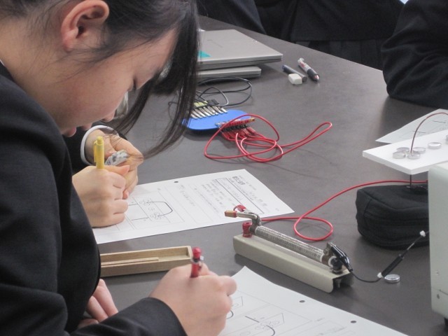 2年2組の理科の授業では、コイルが磁石になる仕組みを説明するために、コイル人一巻きの磁界の向きを調べました。