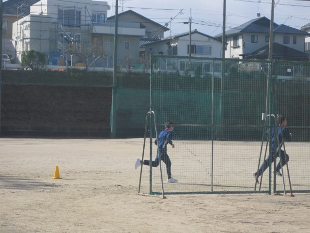 2年1,2組保健体育の男子の授業では、持久走でした。寒い中ですが、元気な2年生!頑張れ!!
