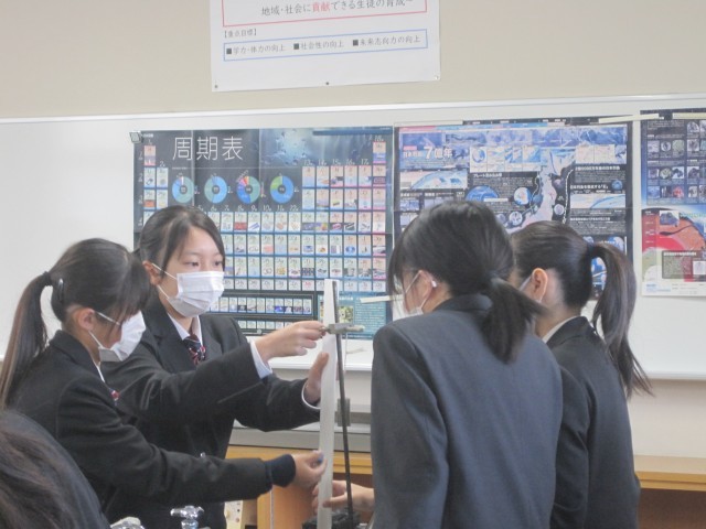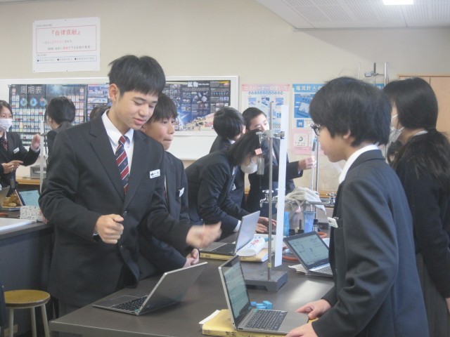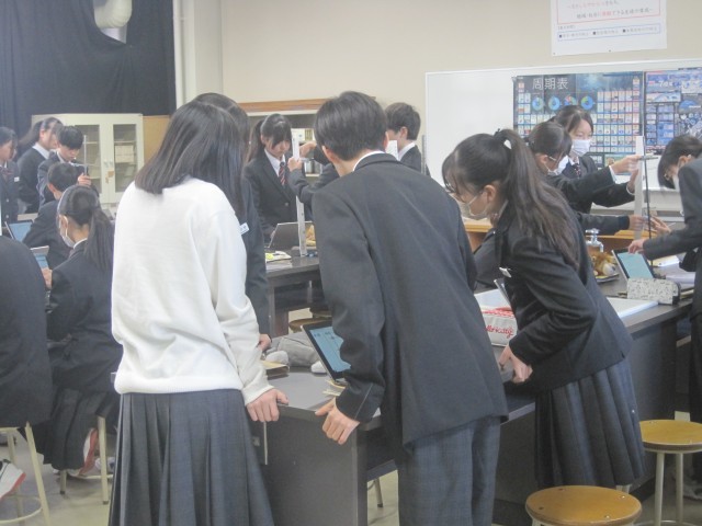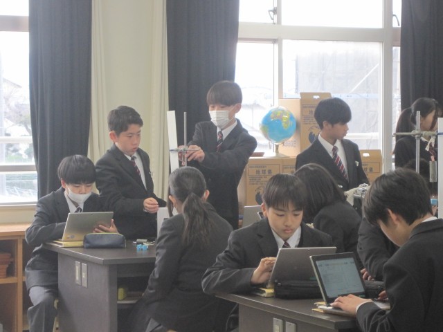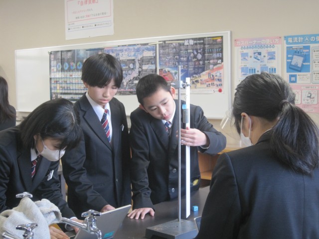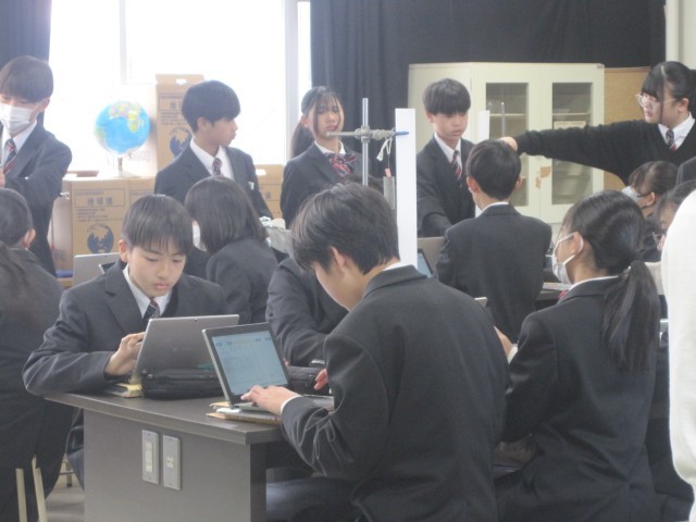 1月23日(金)、理科室では、1年6組の理科の授業が行われていました。みんな真剣に数値を測り、タブレットに入力していました!