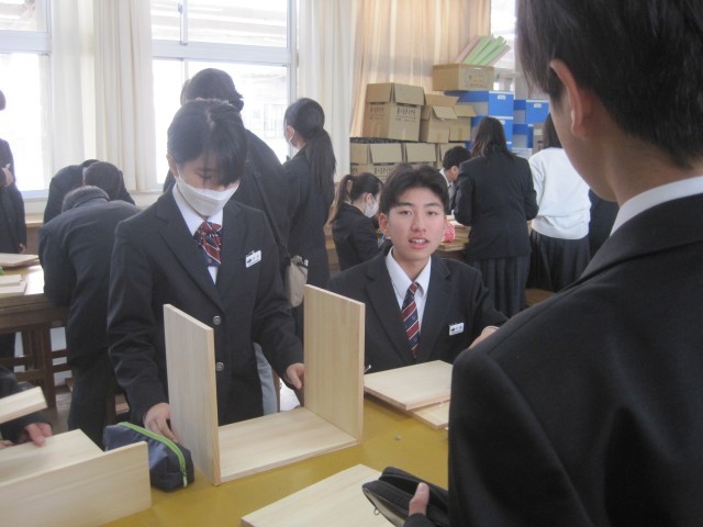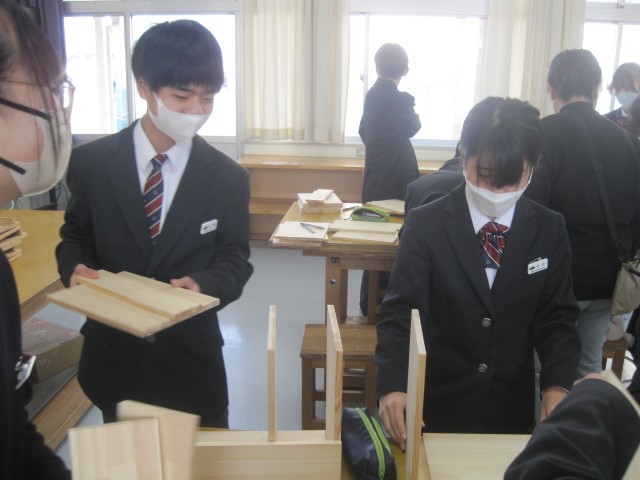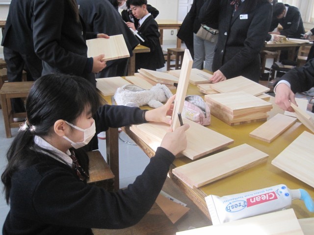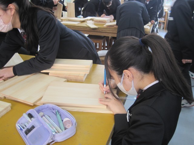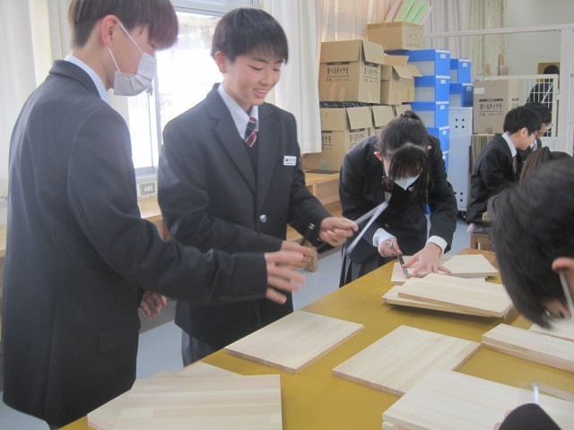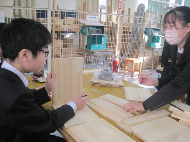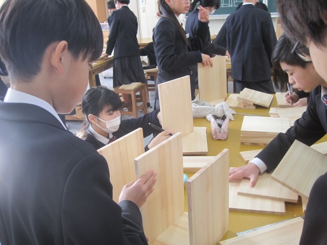 1年6組の技術の授業では、板を切り終わり、少しずつ形ができています。板を並べ、これでいいか確認をしました!