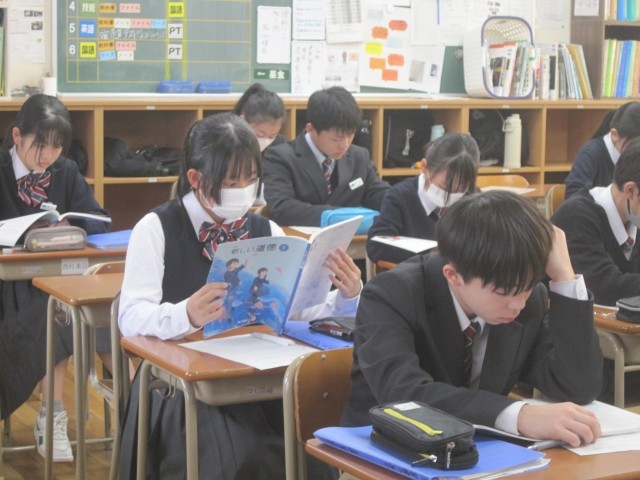 1月29日(木)、1年生は道徳の授業を行いました。先生と生徒との対話を通して考えを深めるなど、じっくり考えていました。