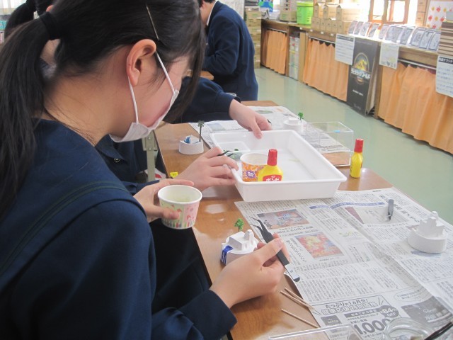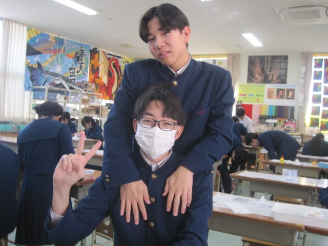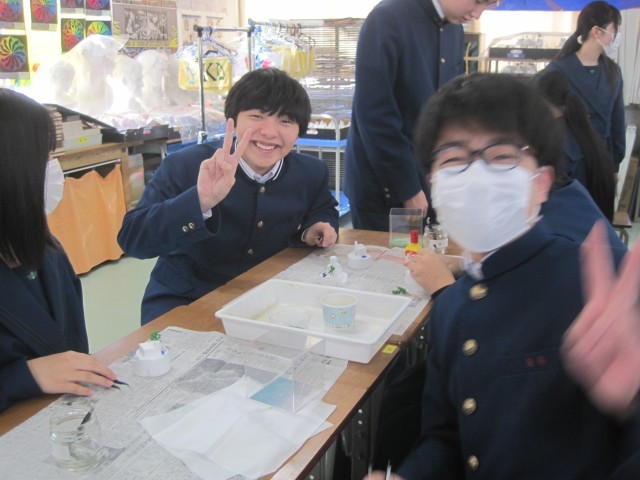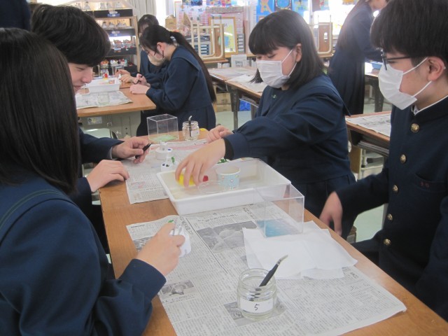 3年6組の美術の授業では、卒業制作の終盤にさしかかったようです。一生の思い出に残る素敵な作品が仕上がりつつあります!