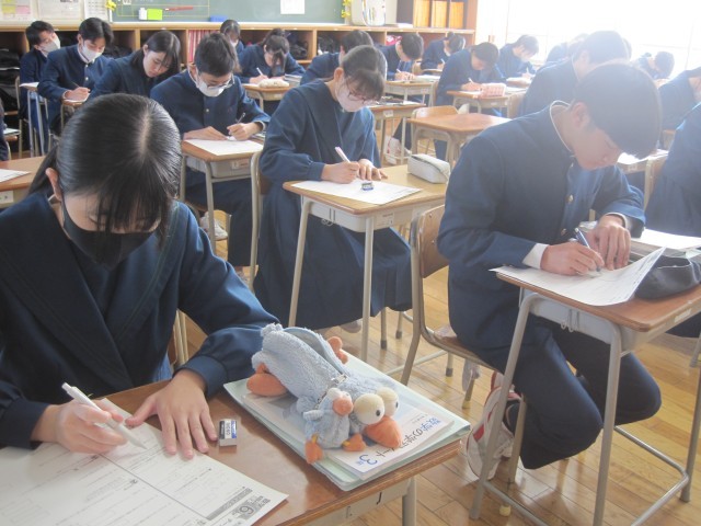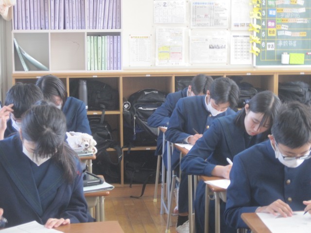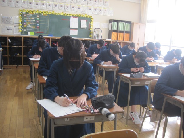 2月2日(月)、3年生はどのクラスもとても静かでした。明日は、公立推薦入試、特色化選抜が行われます。そして来週12日は私立前期入試です。最後の追い込みに全集中でした!