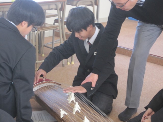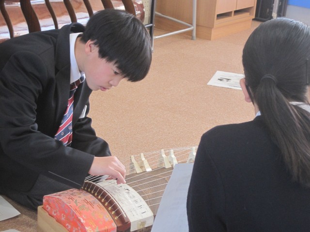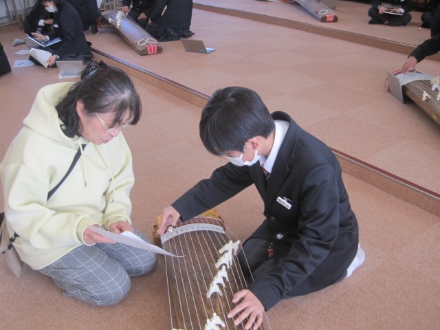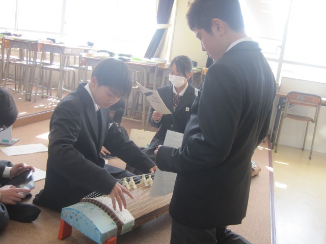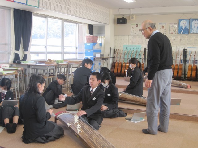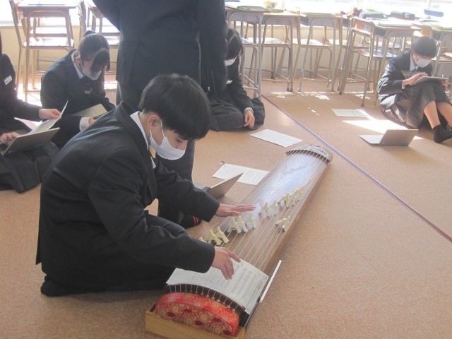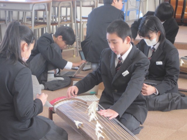 1年6組の音楽の授業では、筝で「さくらさくら」を練習しました。自信があったのでしょう!最後、かっこよく決めてくれました!