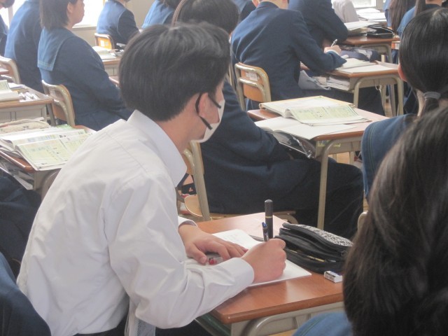 2月6日(金)、3年2組の社会の授業では、これからのエネルギーについて学習しました。萩尾先生から「ドイツは再生エネルギーを100%にしようと考えている」「風力発電は夜でも~」など分かりやすい説明が行われました。