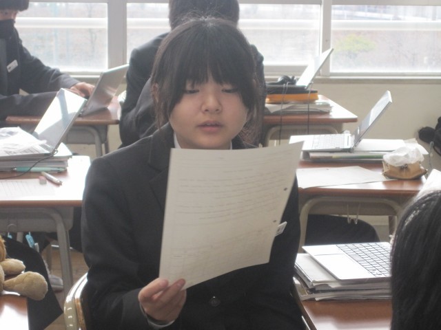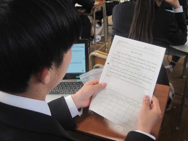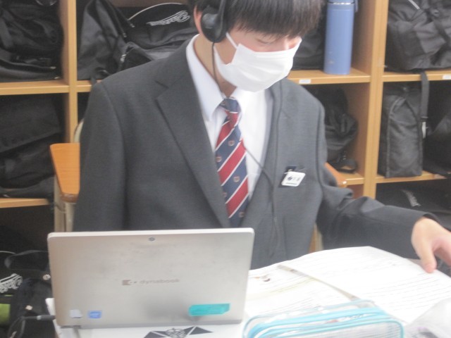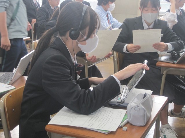 1年4組の英語の授業では、読みの練習を行いました。一人で練習したり、ペアで確認したり、ヘッドマイクを使用したり、思い思いのやり方で練習しました。