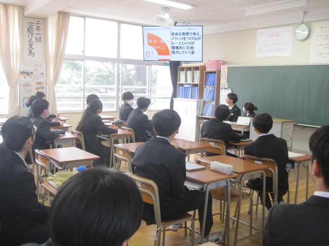 1,2年生は5,6校時に生徒総会に向けて学級審議を行いました。第56期生徒会の活動を決める大切な生徒総会です。一人ひとり真剣に説明を聞いていました。