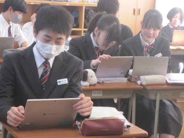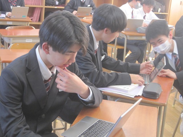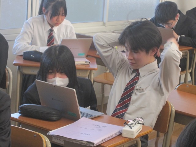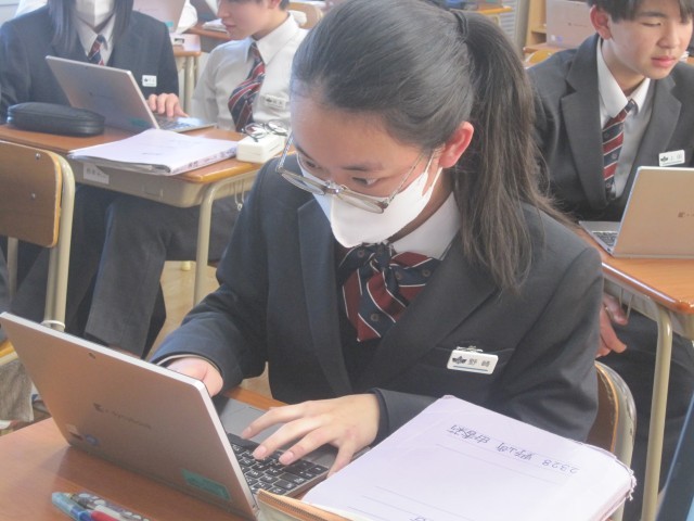 2年3組の国語の授業では、『走れメロス』の続編づくりを行いました。「難しい」「どうしよう」「先生、見てください」悩みながらも、作品が仕上がりつつあります。メロスが王になったという設定、村に帰った後の話、セリヌンティウスの逆襲などさまざまです。定期テスト後に学級で読み合い、相互評価を行います。