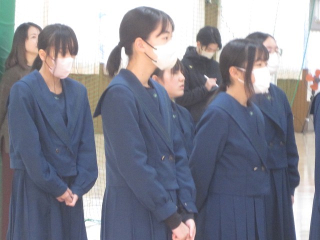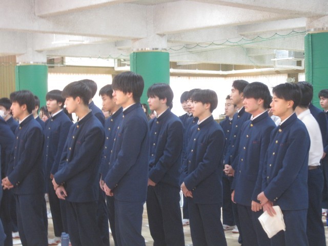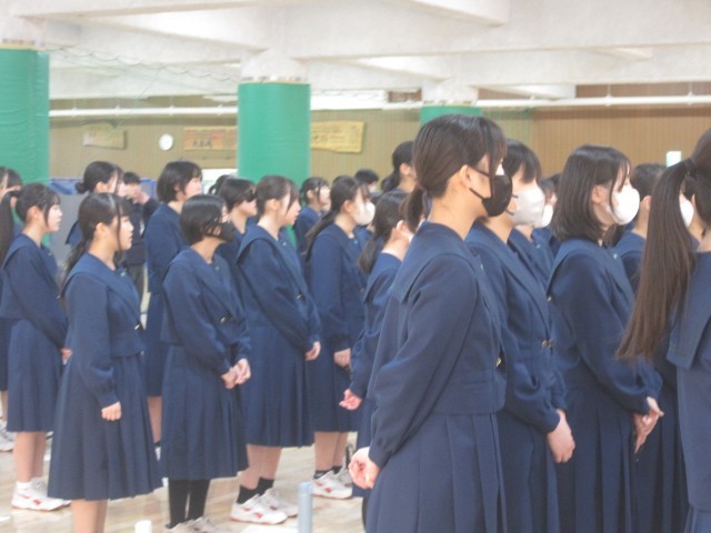 2月12日(木)は私立福岡地区前期入試が行われています。受験しない生徒さんは登校し、1~3校時に武道場で合唱練習を行っています。