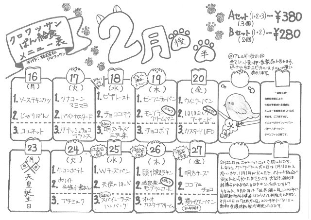 2月16日(月)~27日(金)パンメニュー