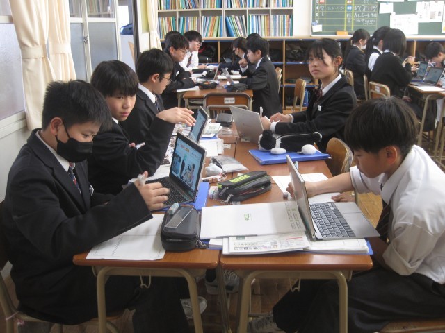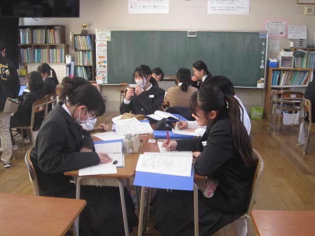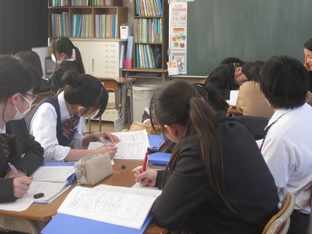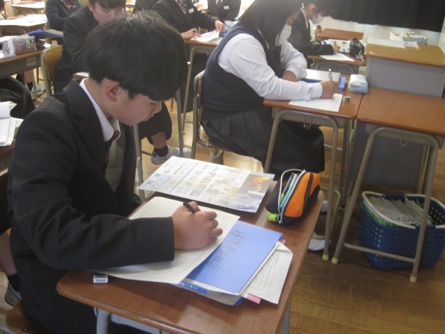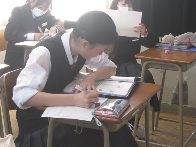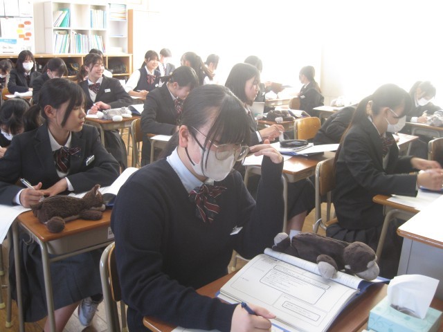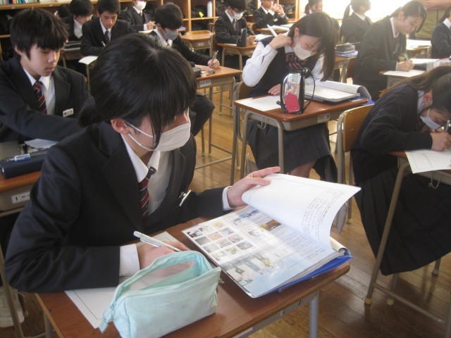1年生も職業講話のレポート作成を行いました。いただいたパンフレット等を読み返す目はとても真剣です!