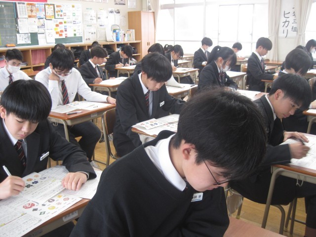 2年生の本日のテストは、①美術、②技術・家庭、③英語です。
